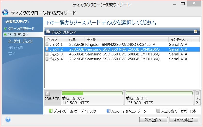 『Acronisのクローンはディスク単位しか選べない。』 SSDすべて 夏のひかりさんのクチコミ掲示板画像1/4