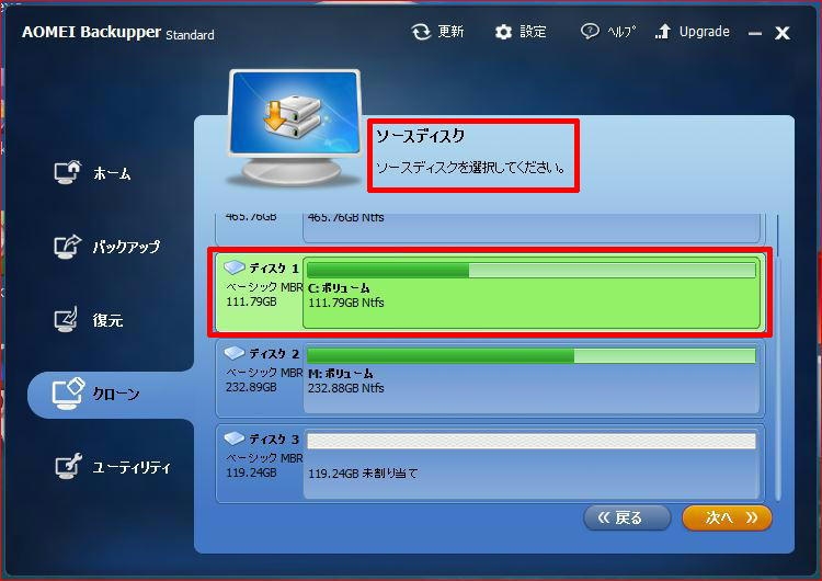ソースディスクの選択