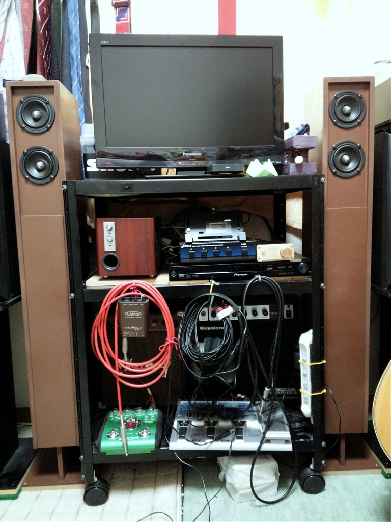 茶色のトールボーイが当該スピーカーです。