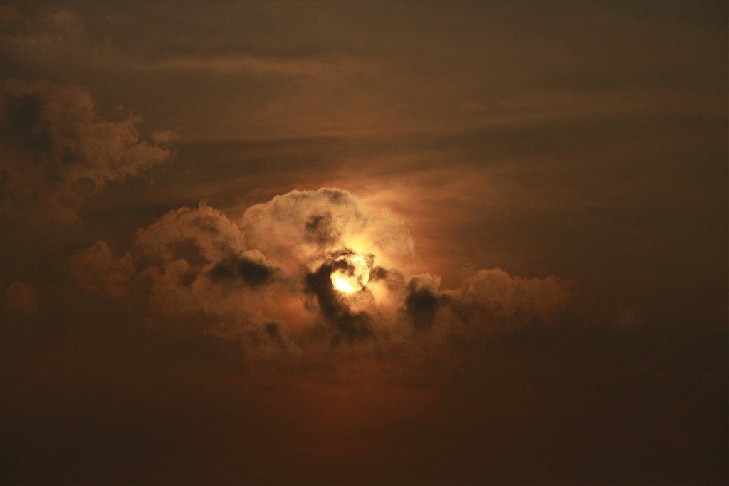 昨日夕日を撮影していたら巨大な子供(犬?)が太陽を抱いているように撮れました