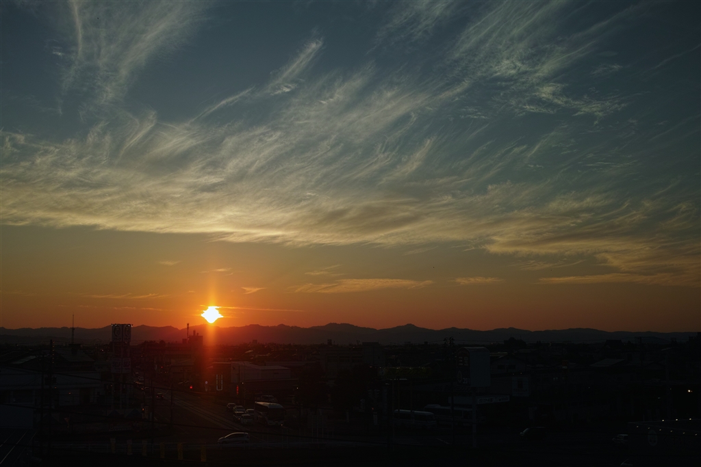 越後平野の夕陽