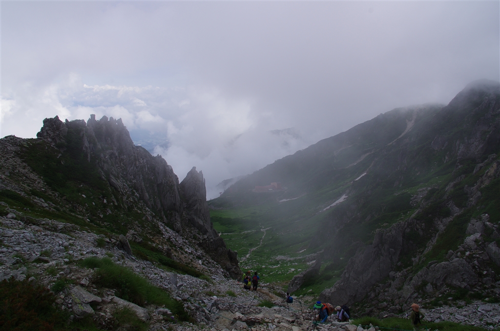 カールの上から、遠くにロープーウエイの駅。