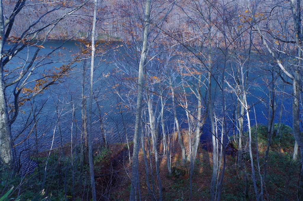 夏は葉が生い茂って見えない位置から見えた晩秋の蔦沼♪