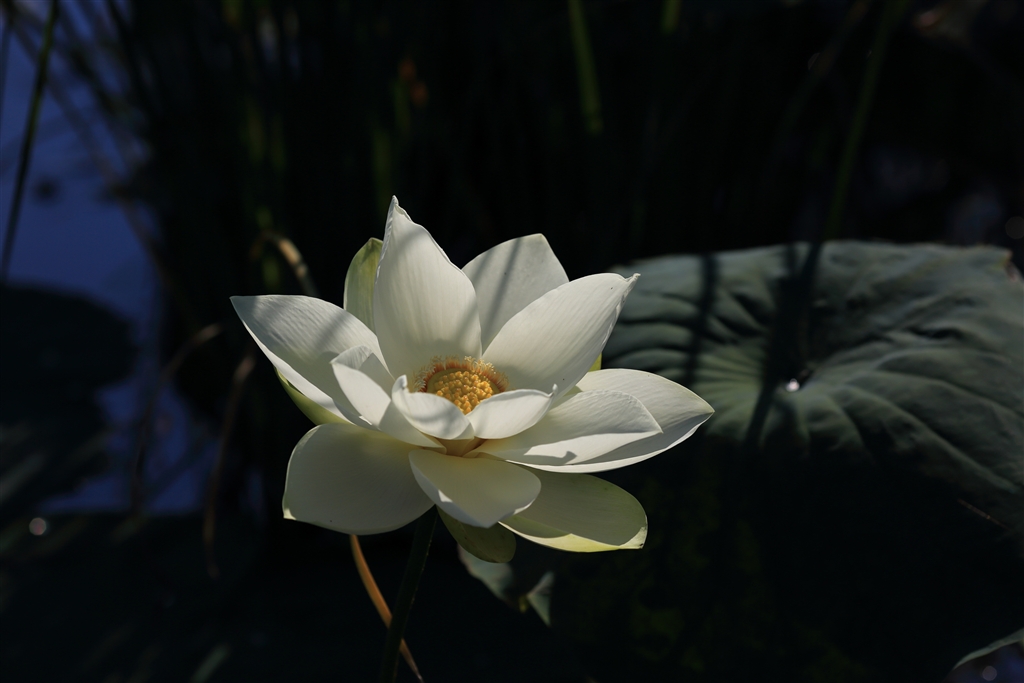 場所を変えて再びハスの花。ちょっと小ぶりな白いやつでした。