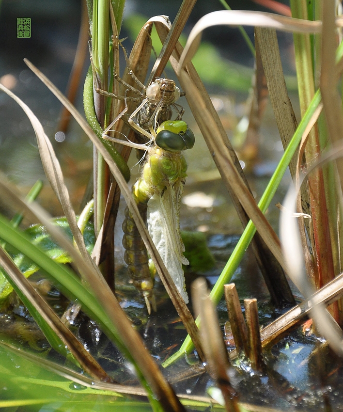 羽化中のクロスジギンヤンマ