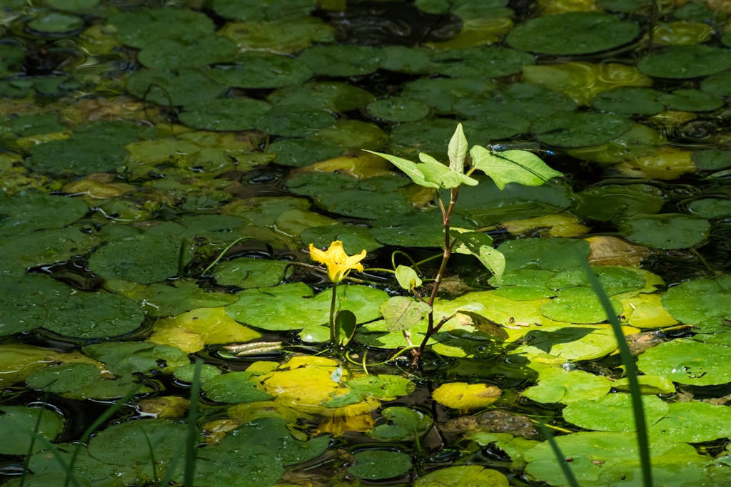 静止しているトンボだと楽なのですが・・・木漏れ日が突然来てトンボも来た