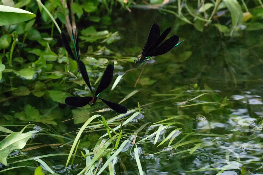極細糸トンボが次世代を残すために飛び交う中で