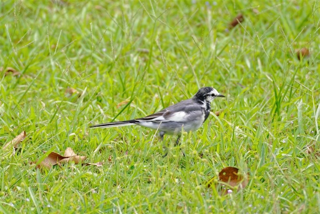 広い草むらで餌を探す鳥も