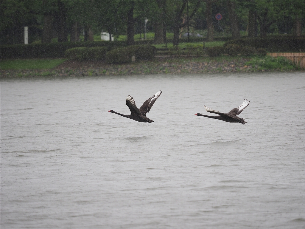 たまには偕楽園公園内の黒鳥の飛翔も