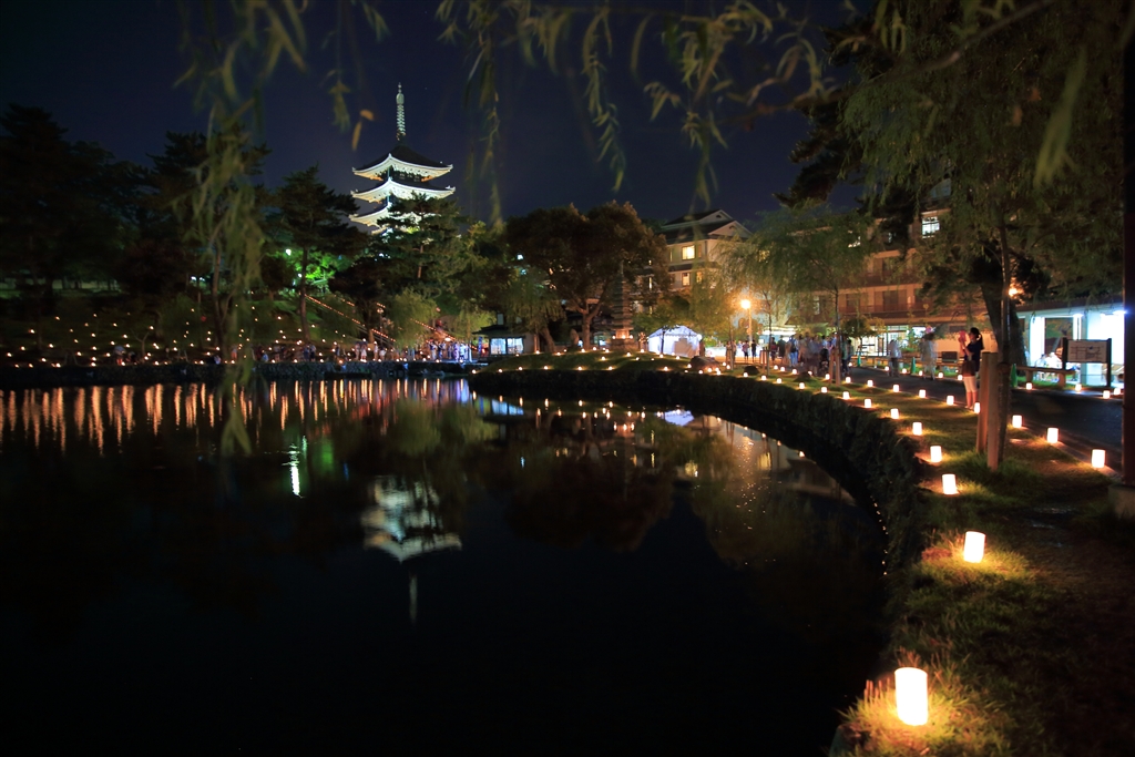「なら燈花会・猿沢池」 興福寺五重塔を望む