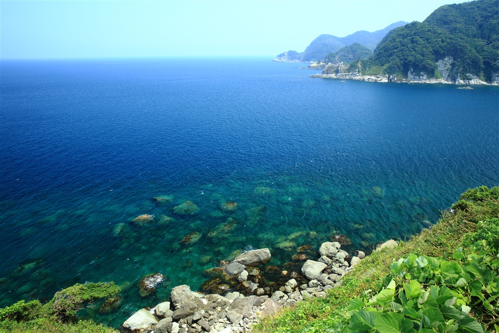 「夏の海の深き色」 余部埼灯台と余部橋梁との中間ぐらい