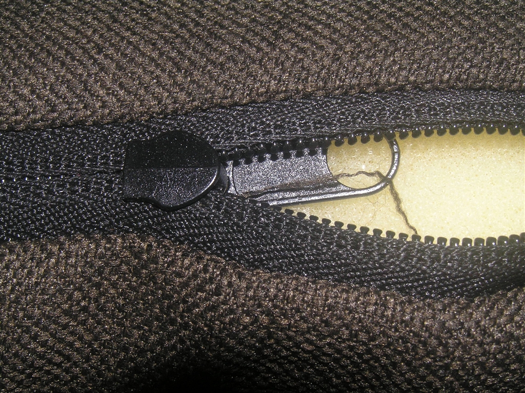 ファスナーが裏表逆に取り付けられています。