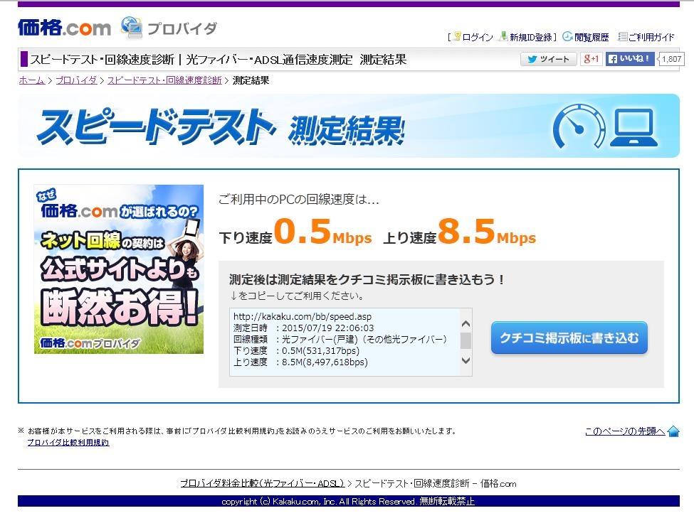 スピードテスト(光ファイバー) apple35さんのクチコミ掲示板画像1/1