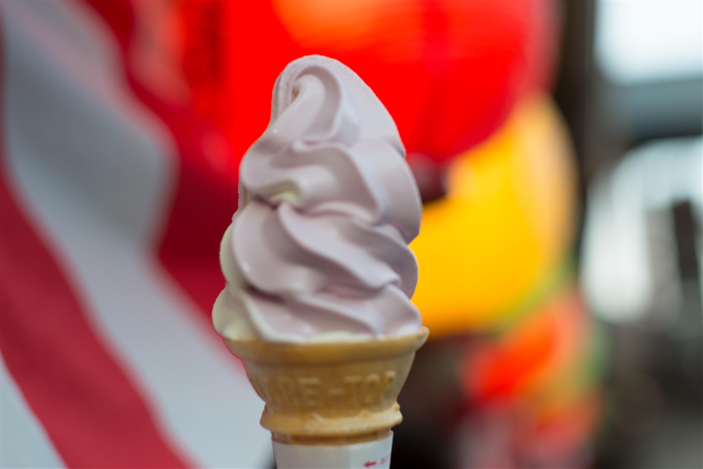 片手でアイスを遠ざけてピント合わせ^^;