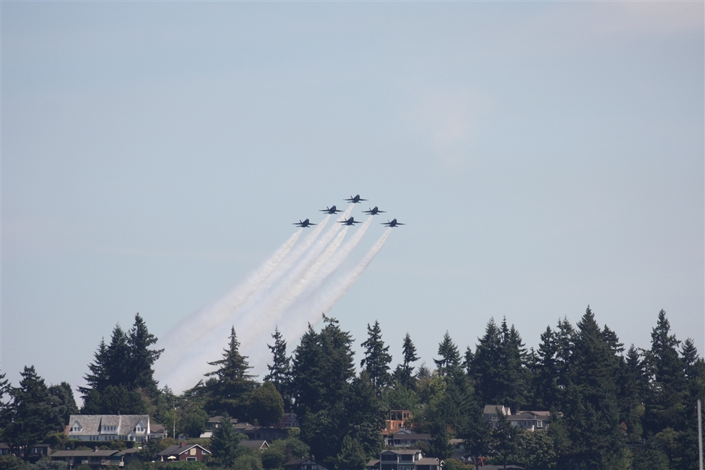 オープニング:マーサーアイランドの豪邸たちの上空に6機で登場。