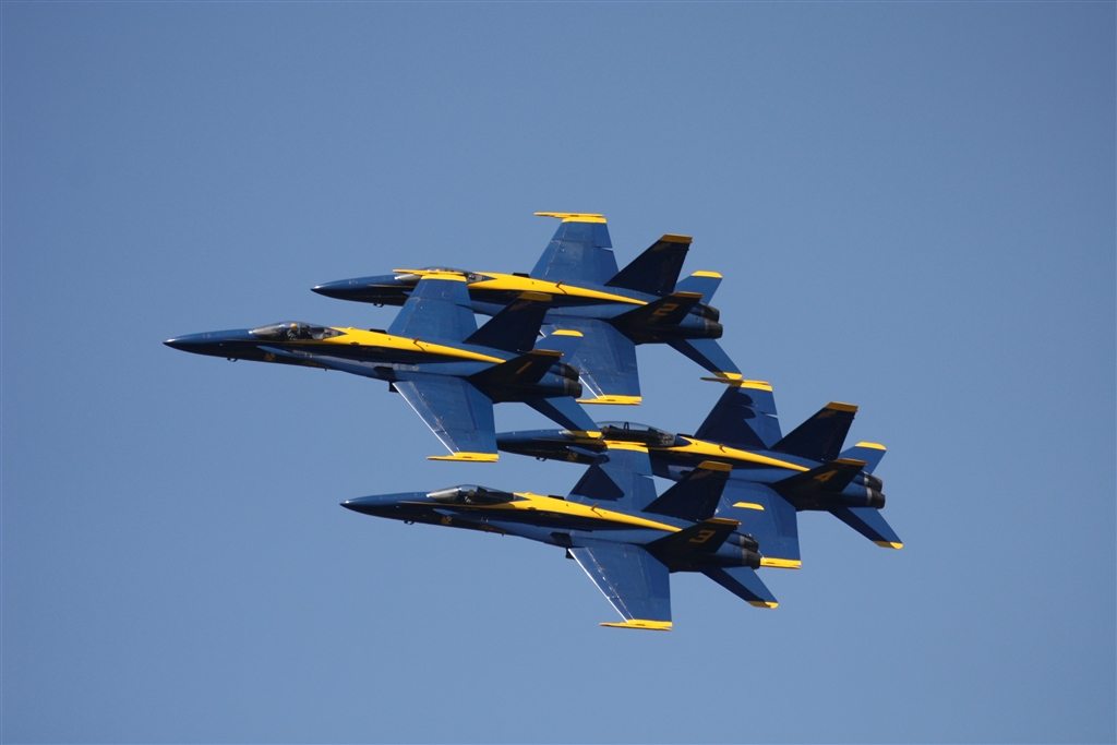 4機。くっつき合って飛んでいます。
