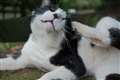 2枚目も微笑ましい状況です。じゃれ合っているネコは中々撮れないのでこういう場面に出会われるのがうらやましいです。
