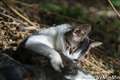 3枚目は顔だけちょっと上げて警戒しているような雰囲気です(苦笑)。ネコらしいポーズですね(笑)。
