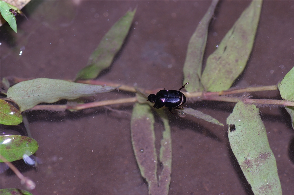 「くる禁」 溺れている甲虫? 助けようとしているアリ(左上)