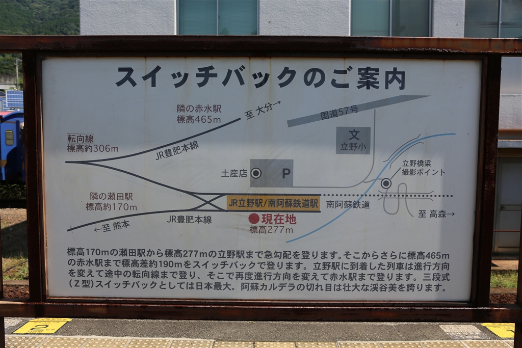 立野駅でのスイッチバックの案内