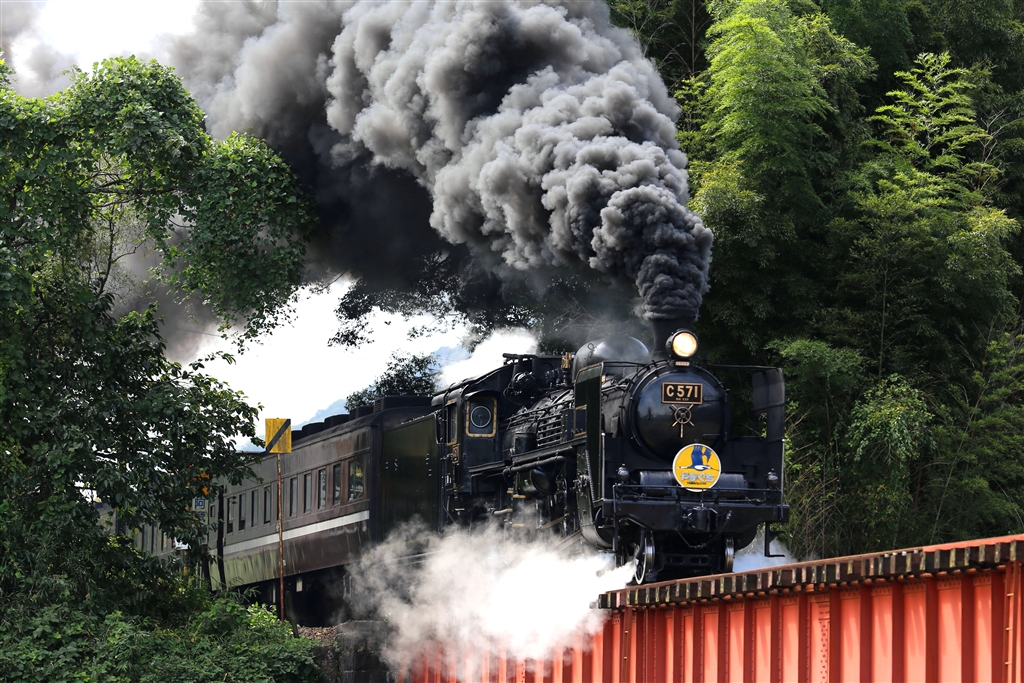 長門峡駅出発はいつも煙と蒸気を出してくれます!(^^)!