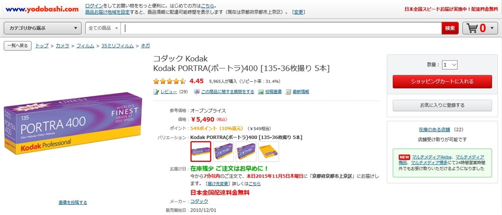 『ポートラ400 5本パック』 カメラフィルムすべて saba@camaraさんのクチコミ掲示板画像2/2