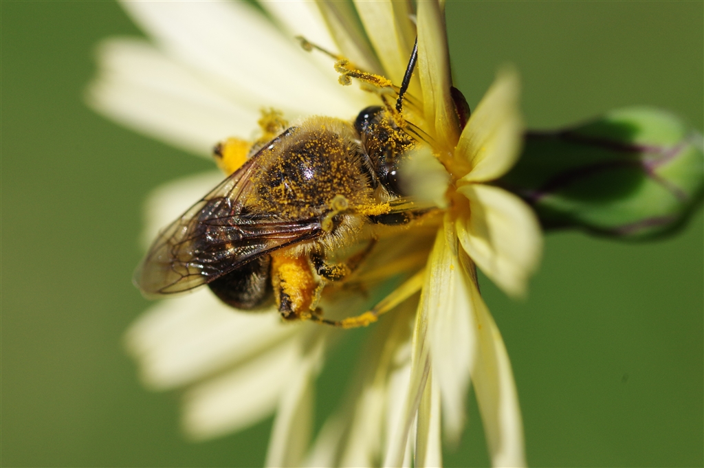 「くる禁」 アキノノゲシ撮っているとミツバチ 等倍