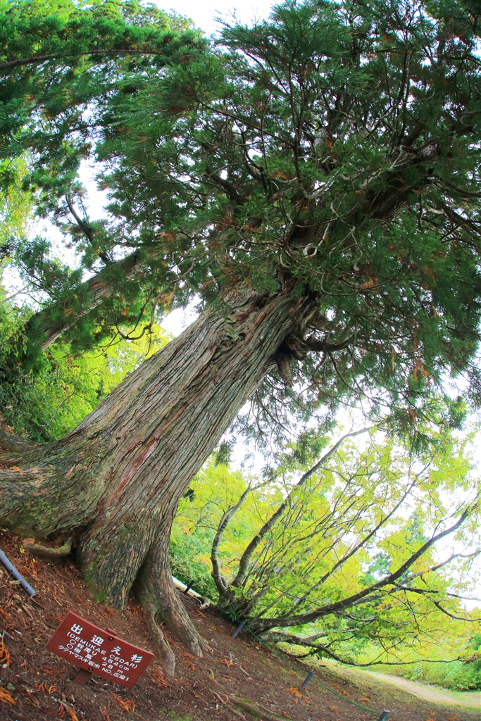 「いらっしゃ〜い」 出迎え杉・・・美女平の巨木杉