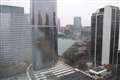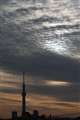 今朝の東京、土壌の水分が蒸発し、空気の流れが弱いために朝もやと化しました。