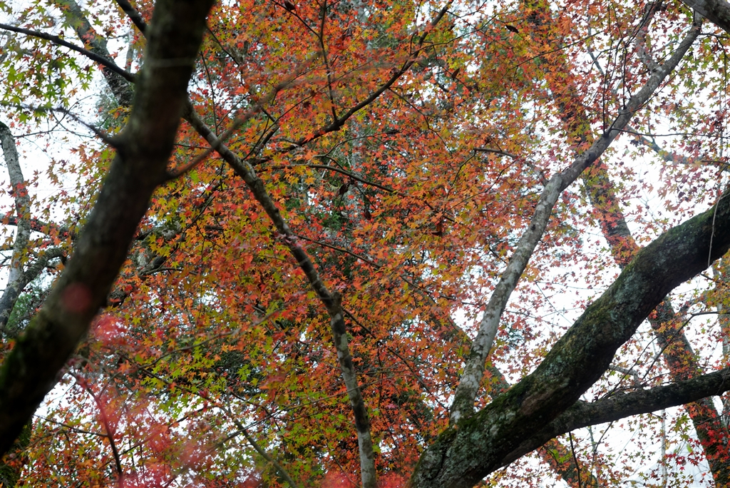 まだ完全に紅葉していないのに散り急いでいます
