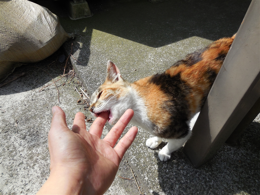 みけ子に指をなめさせてみる。
