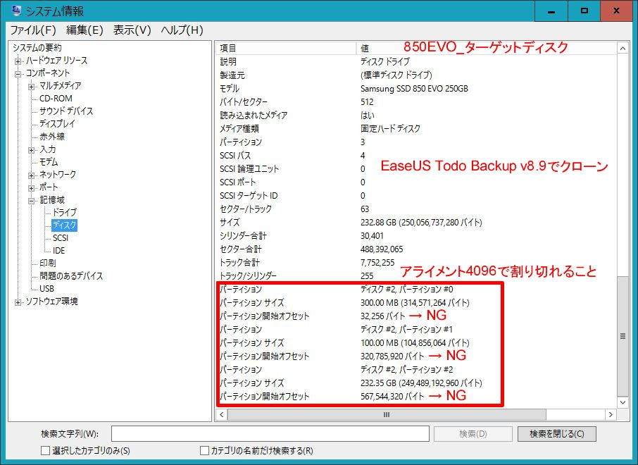 『ターゲットディスク → アライメント=NG』 SSDすべて 夏のひかりさんのクチコミ掲示板画像2/4