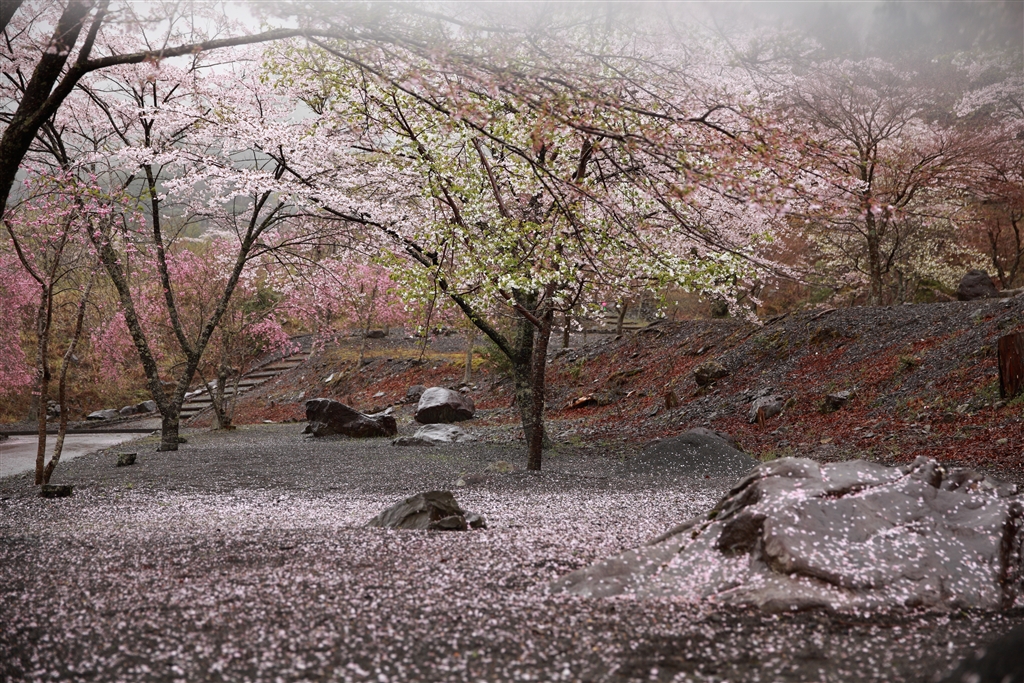 静岡の山間・・・雨の桜もよし