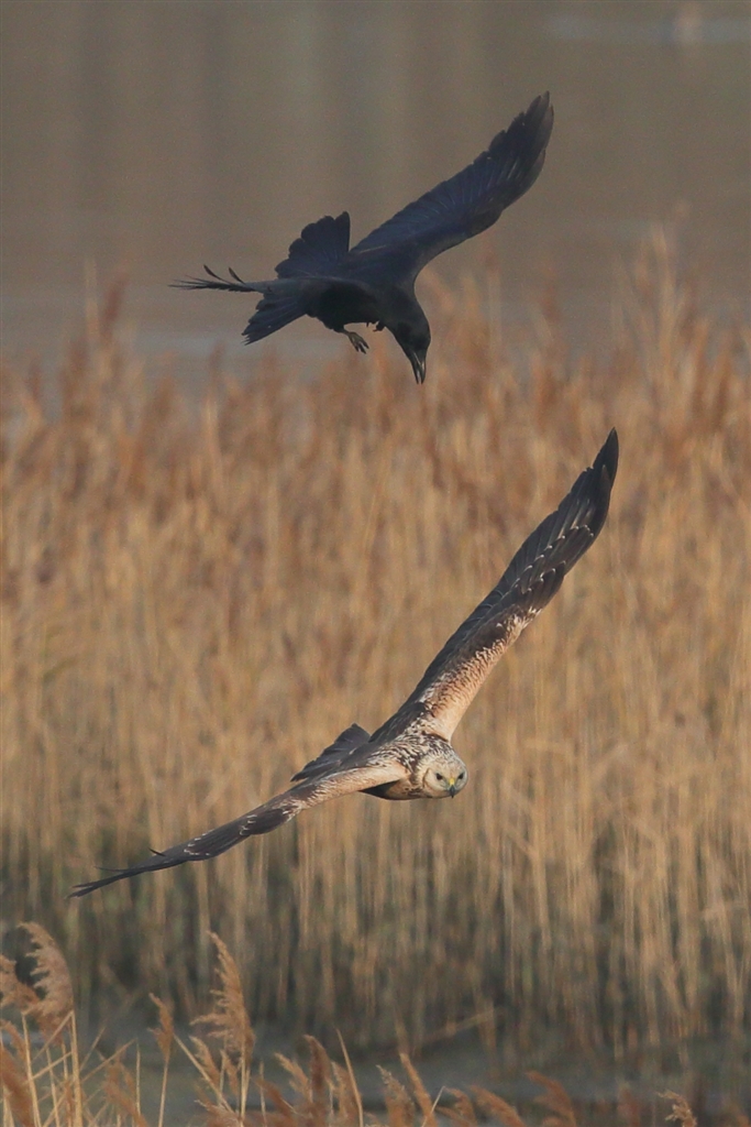 カラスに襲われるチュウヒ