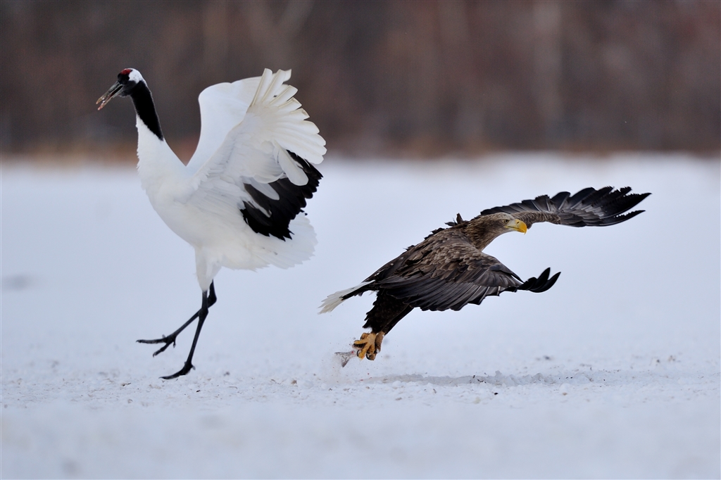 タンチョウをかすめて獲物ゲット D3s+ゴーヨン トリミング有