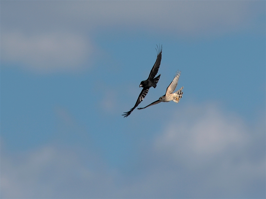 オオタカと友好的なハシブトカラス