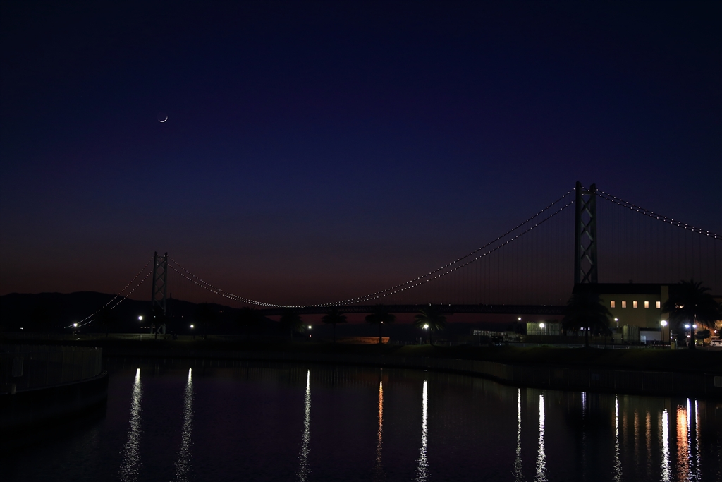明石海峡大橋(地球照に照らされた月が綺麗でした)