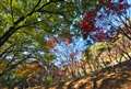 緑の中の紅葉引き立ちます。かえって新鮮ですね。