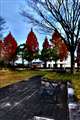 今年の紅葉は、どこもこんな感じですね。唯一、栗田美術館のモミジは綺麗に色づいていました。