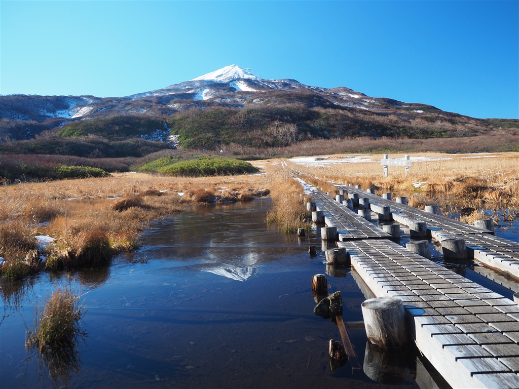 逆さ鳥海山も氷づけ