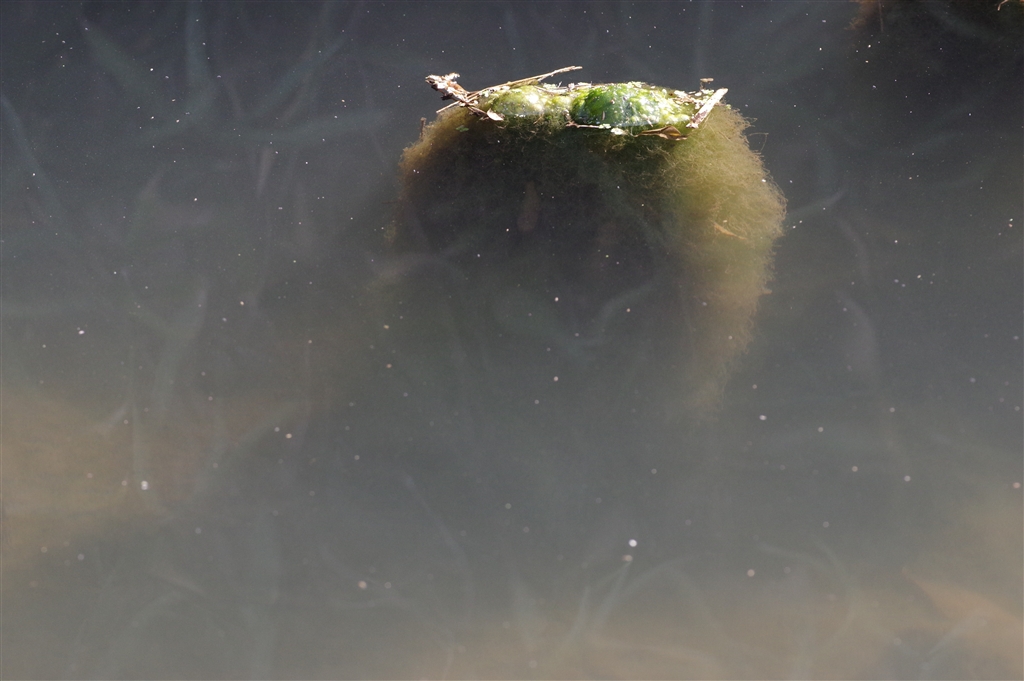 池の水面スレスレに藻?