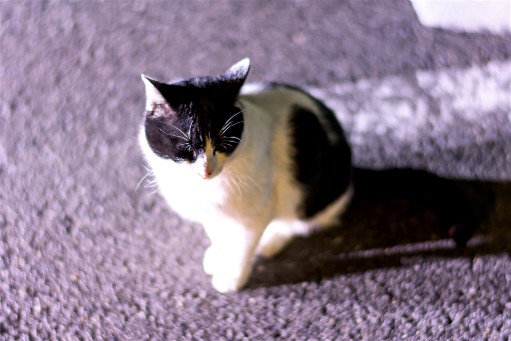 車のヘッドライトに思わず、まぶちい! をする猫くんでした