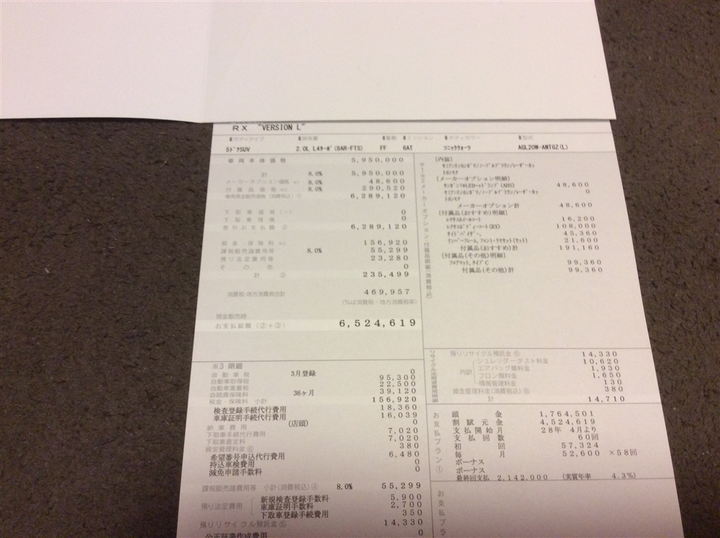 レクサスRX商談メモ