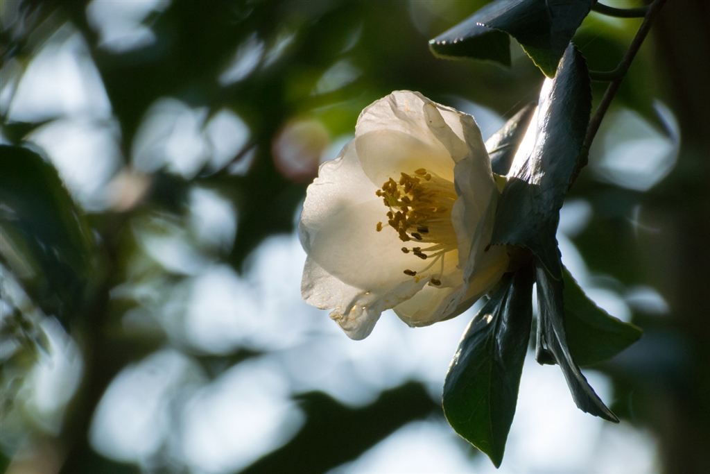 鳥撮りのついでなので70-300mm利用 晴天下 こんな藪椿が好きです