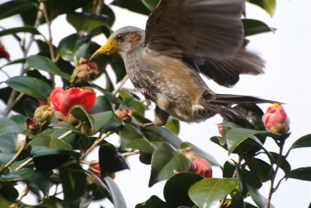 ヒヨドリ メジロを追い立てて縄張り宣言