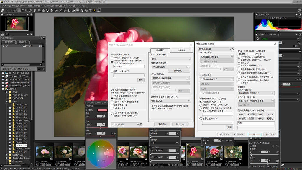SilkyPix 現像設定画面(JPG最高画質ではEXIF非準拠となっている)