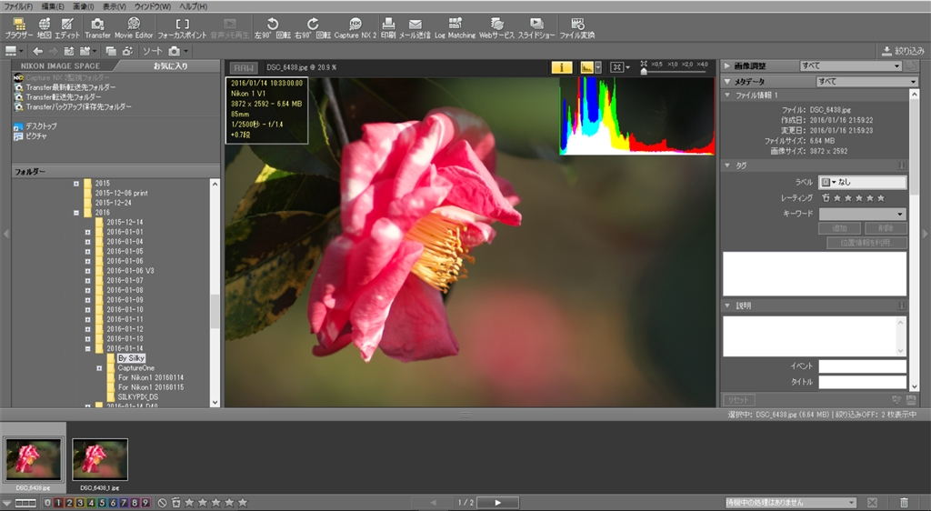 『ViewNX-2で Exif情報が不完全』ニコン 新シロチョウザメが好きさんのクチコミ掲示板画像1/2