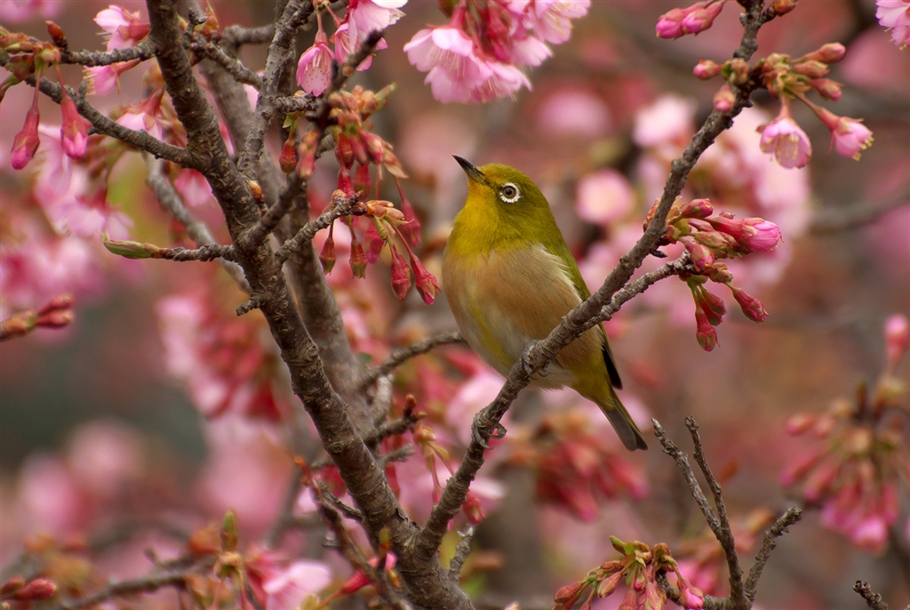 寒緋桜とメジロ