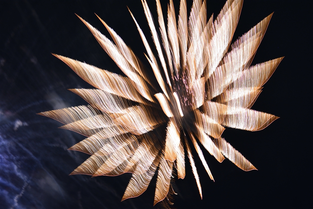 三脚禁止エリアだったので打上げ花火をズームしながら撮ってみました