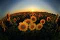 写真Bは、夕陽に染まったヒマワリ畑です。夕陽の光景をそのまま撮ると、ヒマワリはどす黒く写ります。綺麗に染まった色にはなりません。
